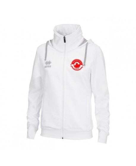 Woman's hooded sweatshirt, full zip, hood in double layer in matching grey colour. Colour: white. Fabric: 80%cotton, 20% polyester
