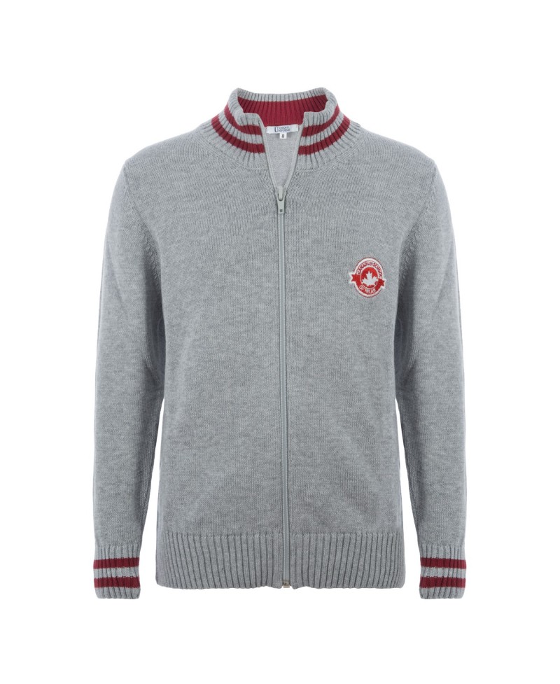 Grigio con dettagli rossi, 50% lana 50% acrilico, pre-trattato e pre-lavato, lavabile in lavatrice con ciclo per lana e detergente delicato.