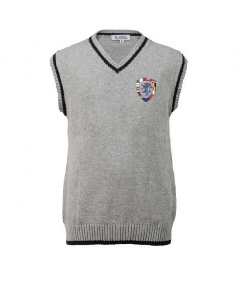 Grey with navy blue details, 100% cotton pre-treated and pre-washed, machine washable at 30°