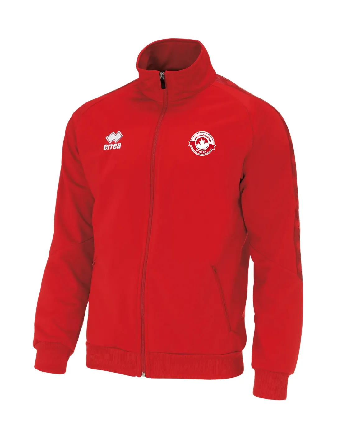 Full-zip jacket, cuffs and wide waistband in elasticated ribbing, side pockets, silkscreen printed band tone-on-tone on the sleeves.