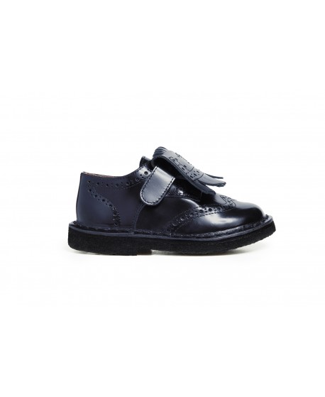 Scarpa Oxford classica con velcro e frangia amovibile in pelle spazzolato blu, fodera in pelle, suola para (gomma naturale)
