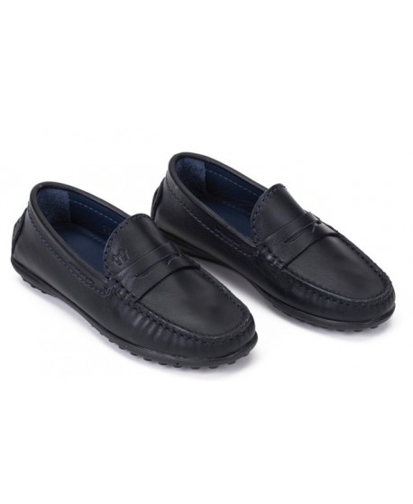 Mocassino in pelle blu navy, fili di cotone in tinta e fodera in pelle naturale, sottopiede imbottito e suola esterna in TR (thermal rubber) nero