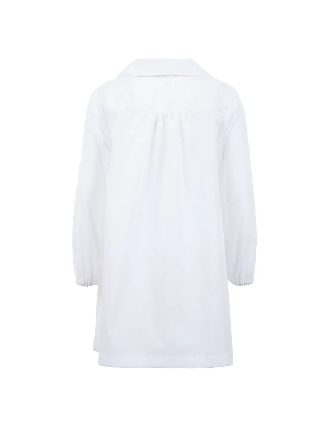White, 65% popeline cotton 35% polyester, machine washable at 40°.