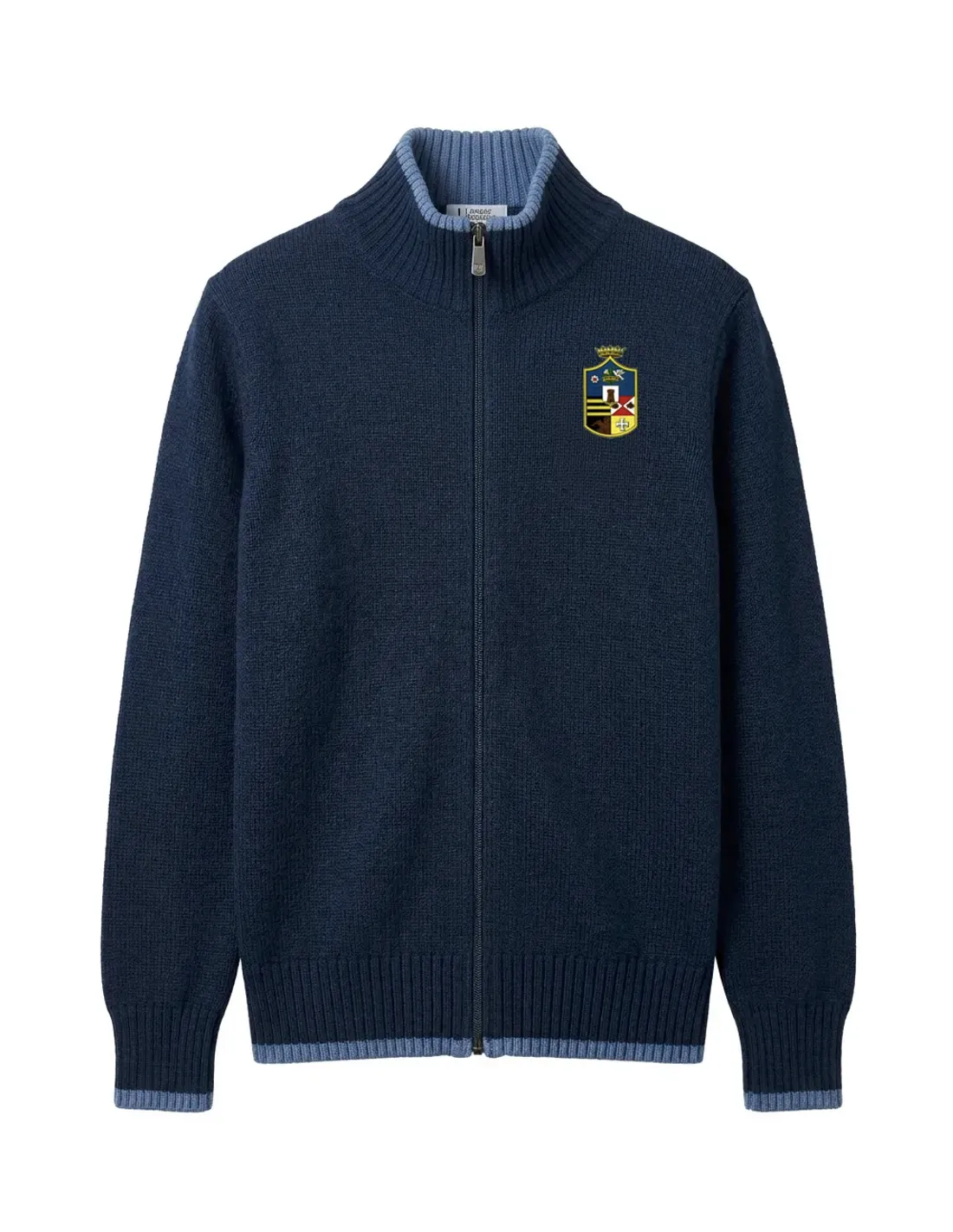 Zipped cardigan in navy blue with light blue details, 100% OEKO-TEX 100 certified cotton, Machine washable at 30°. Pre-treated and pre-washed.