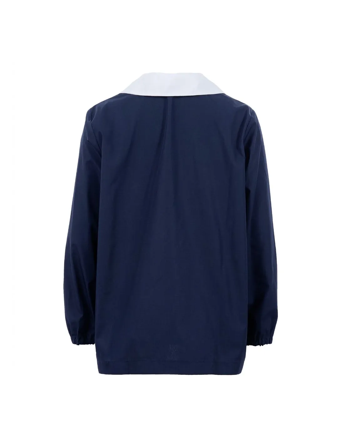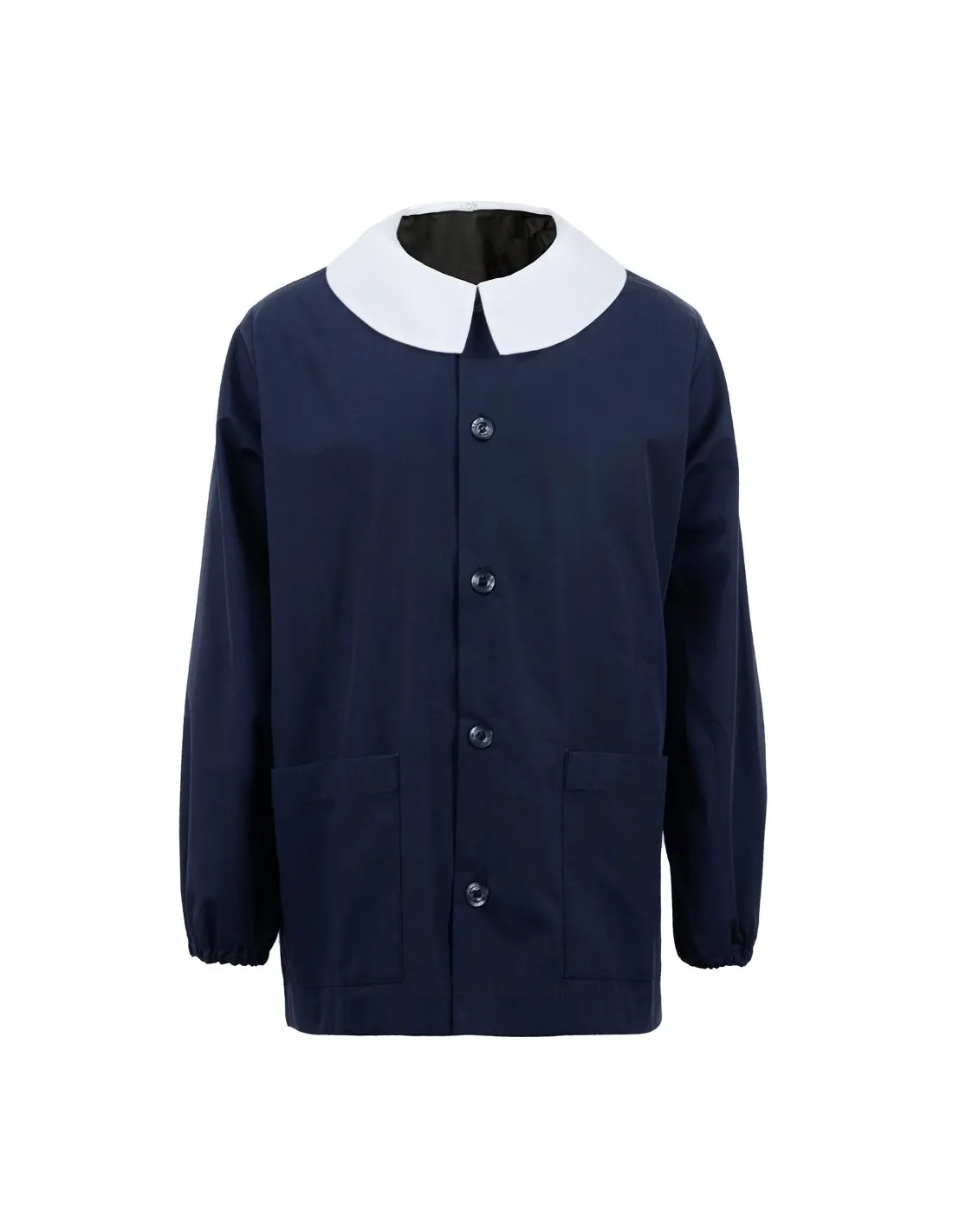 | Nero con colletto bianco rimovibile, popeline 65% cotone 35% polyestere, lavabile in lavatrice a 40°. |