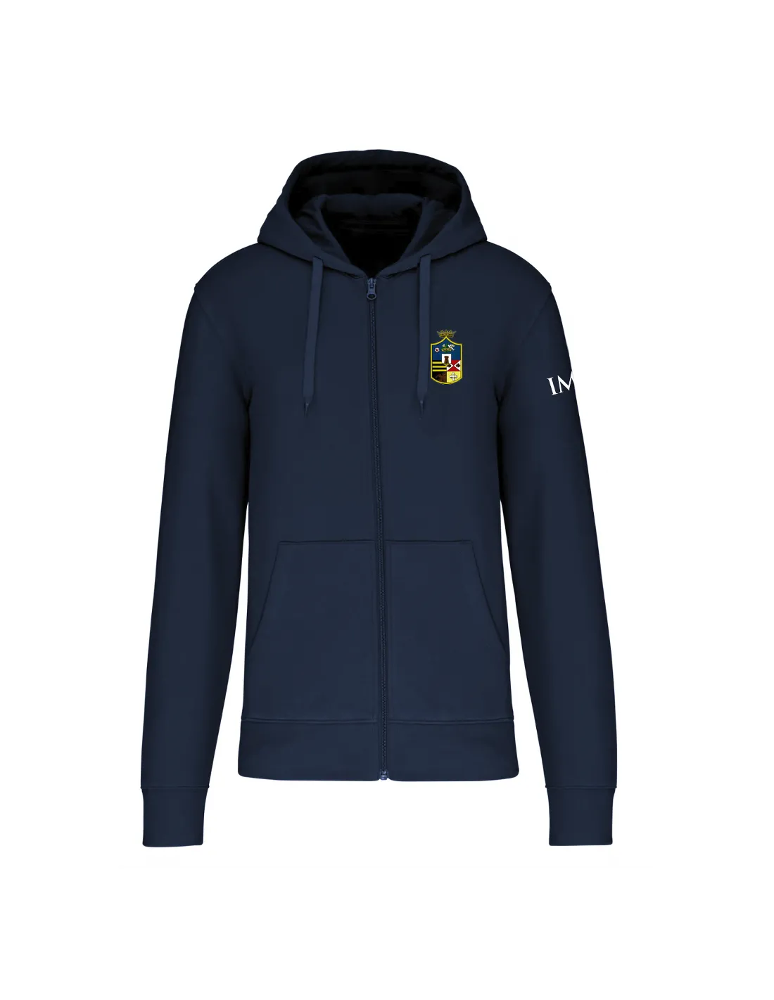 Felpa blu con zip in caldo cotone, 80% cotone e 20% poliestere, pre trattata e pre lavata, lavabile a 30°