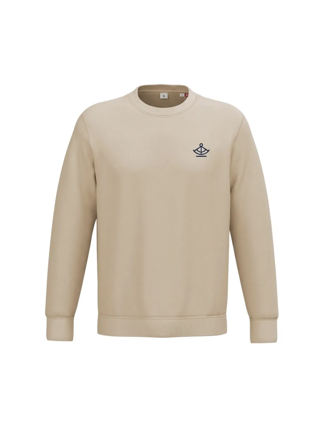 Beige round neck sweatshirt in warm cotton, 80% cotton and 20% polyester, machine washable at 30°