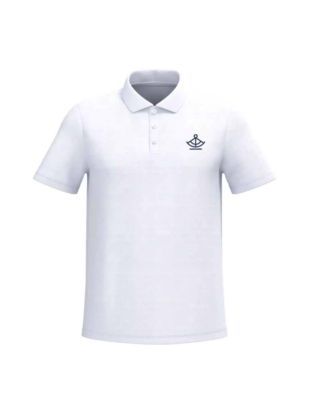 White polo, 100% cotton, machine washable at 30°, no dryer.
