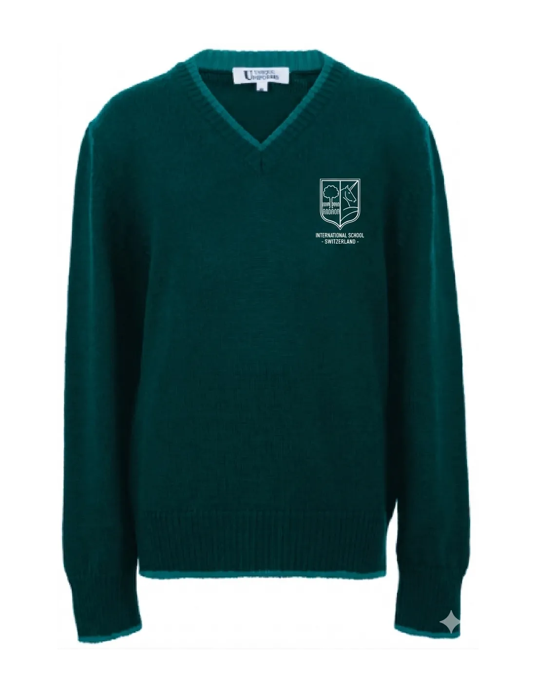 Vert avec des détails blancs, 0% laine mérinos 50% acrylique, pré-traité et prélavé, lavable en machine à cycle doux avec du détergent pour laine, pas de sèche-linge.