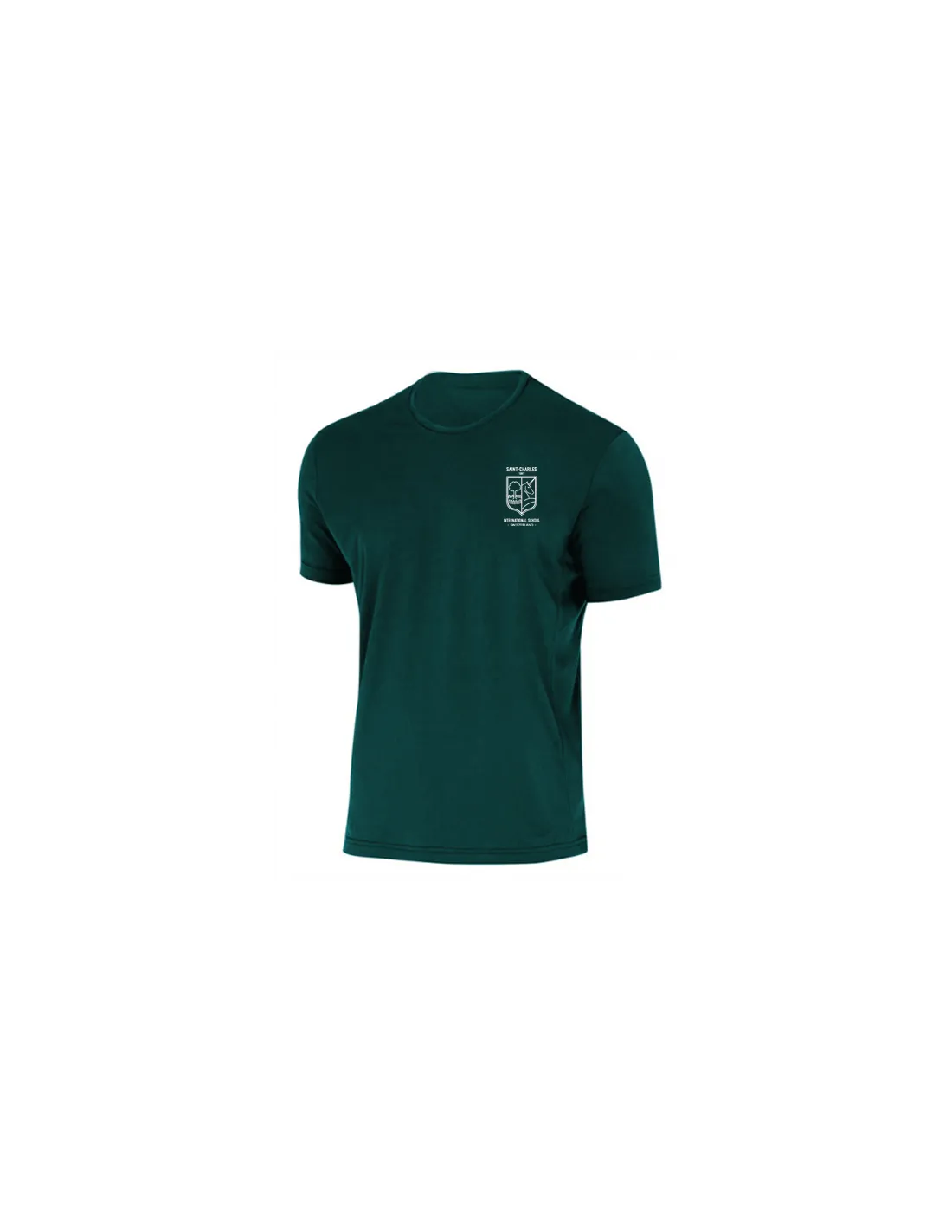 T-shirt technique vert, 100% polyester, lavable en machine à 40°.
