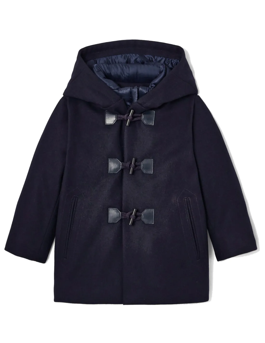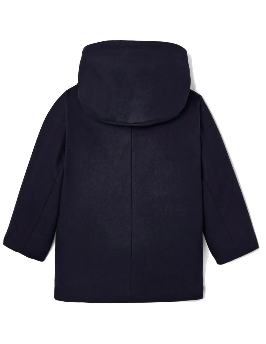 Montgomery jacket in 100% wool with internal quilted nylon lining, double closure with zipper and alamari buttons.